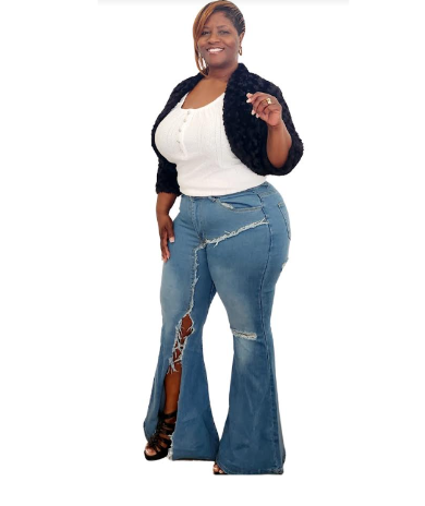 Brick House Jeans | YEnvyMe Flared Leg Ripped Jeans | Side Slit Stretch Denim Bell Bottom Jeans