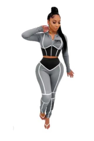 2 Piece Tracksuit with Hooded Crop Zipper Jacket | Joggers with Striped Legs | YEnvyMe Hooded Tracksuit